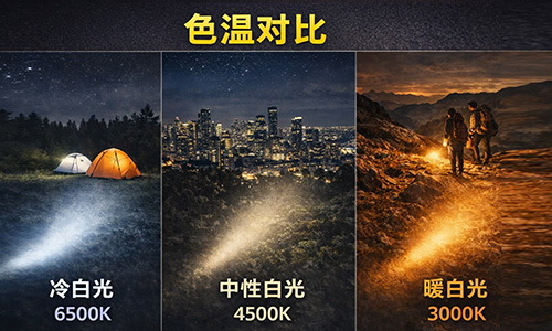 当需要在户外长时间使用时,建议选择中白光;而当使用场景里常出现雨雾、降雪天时,建议选择拥有黄光的照明装备。