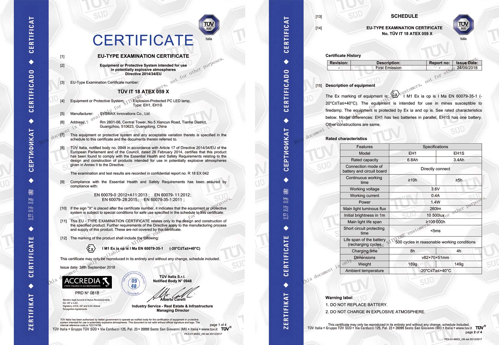 广州希脉创新科技有限公司的防爆照明系列产品其中EF1已通过法国中央电力电器实验室(LCIE)的所有测试,EH1、EH1S已通过TÜV南德意志集团实验室的所有测试,测试结果证明NITECORE奈特科尔品牌的EF1、EH1、EH1S完全符合ATEX防爆指令的要求。