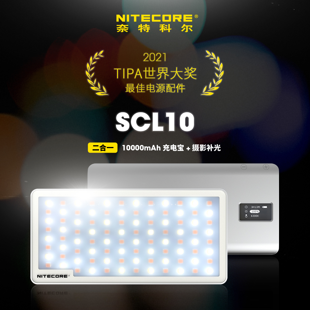 NITECORE奈特科尔SCL10二合一摄影补光灯荣获2021年TIPA世界大奖最佳电源配件!
